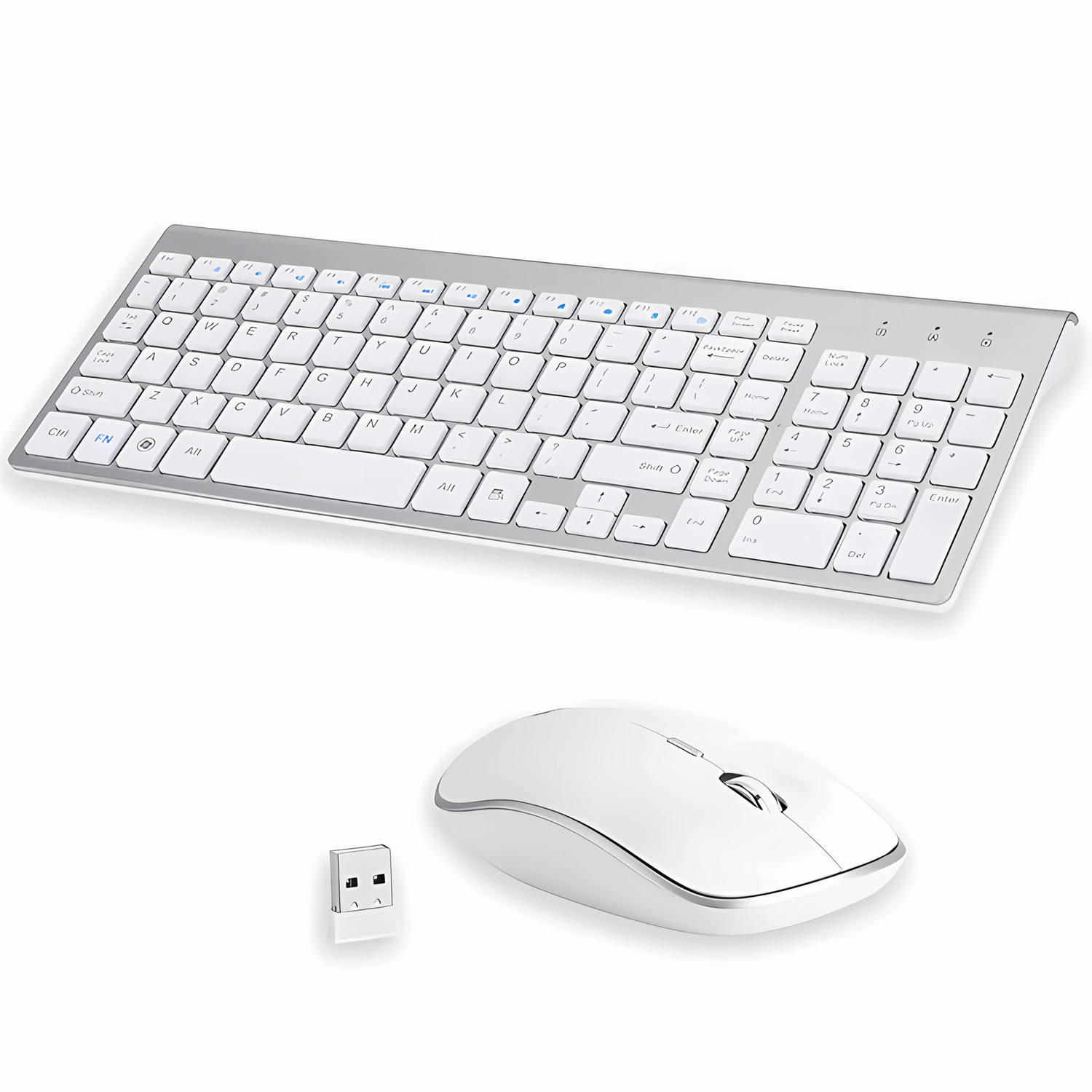 Univerzális Combo Bervolo® Prémium Billentyűzet és Egér, Vezeték nélküli 2.4G, Click Scissor-Switch, US Verzió, Fehér