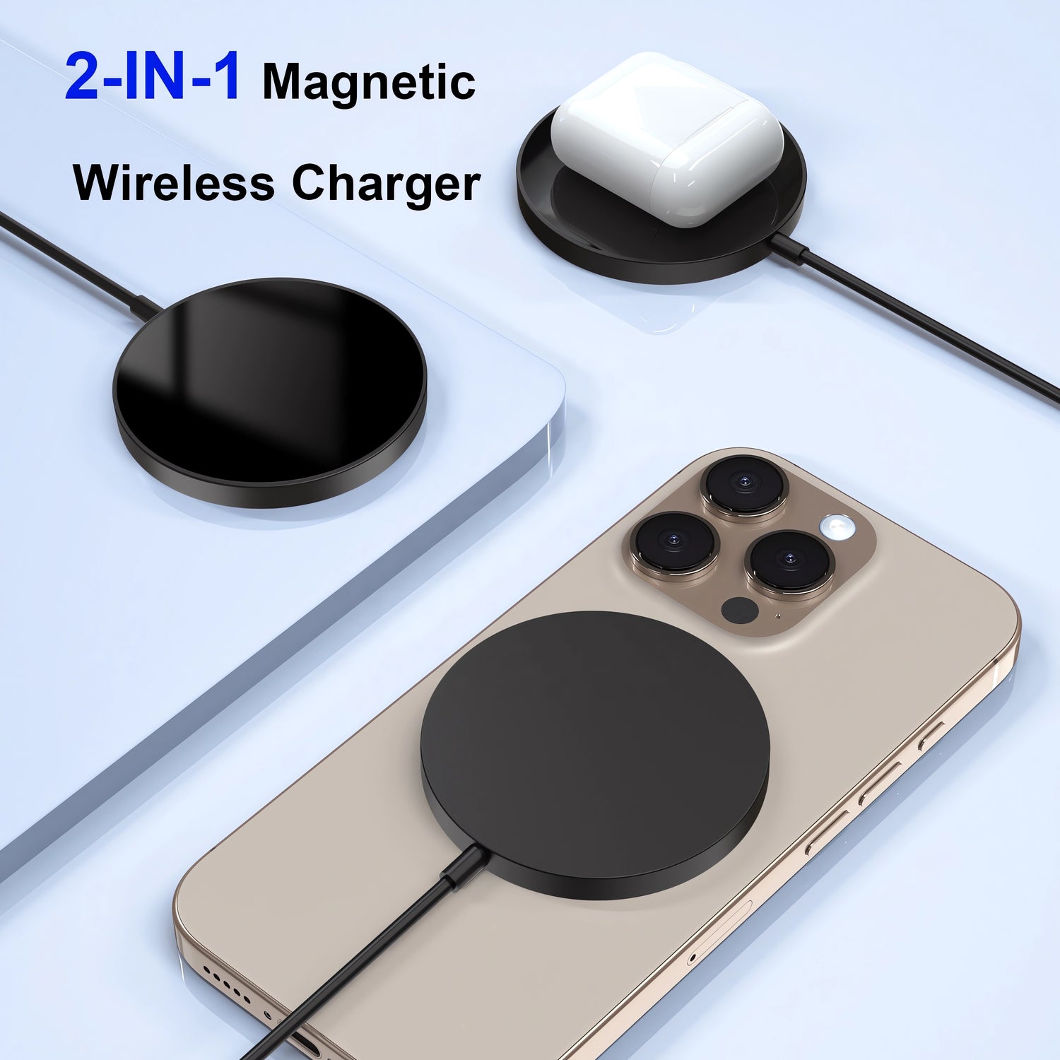 Bervolo® Magnetic Safe Wireless Charger, 15W Fast Charging, USB-C, compatible with iPhone 15/14/13/12/11 Pro Max, AirPods Pro, Samsung, Huawei, LG, Xiaomi, Black
