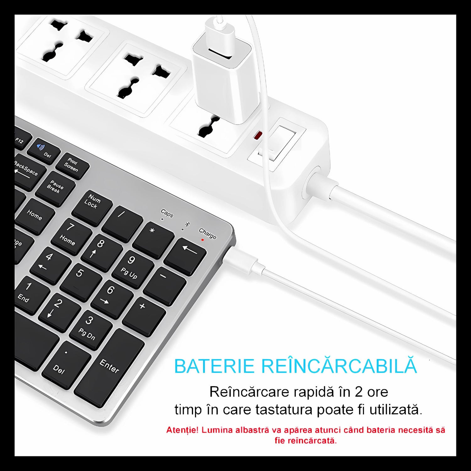 Bervolo® Újratölthető Bluetooth Billentyűzet – Scissor Switch, Multimédiás Billentyűk, Univerzális Kompatibilitás, Windows/Mac/iOS/Android, fekete