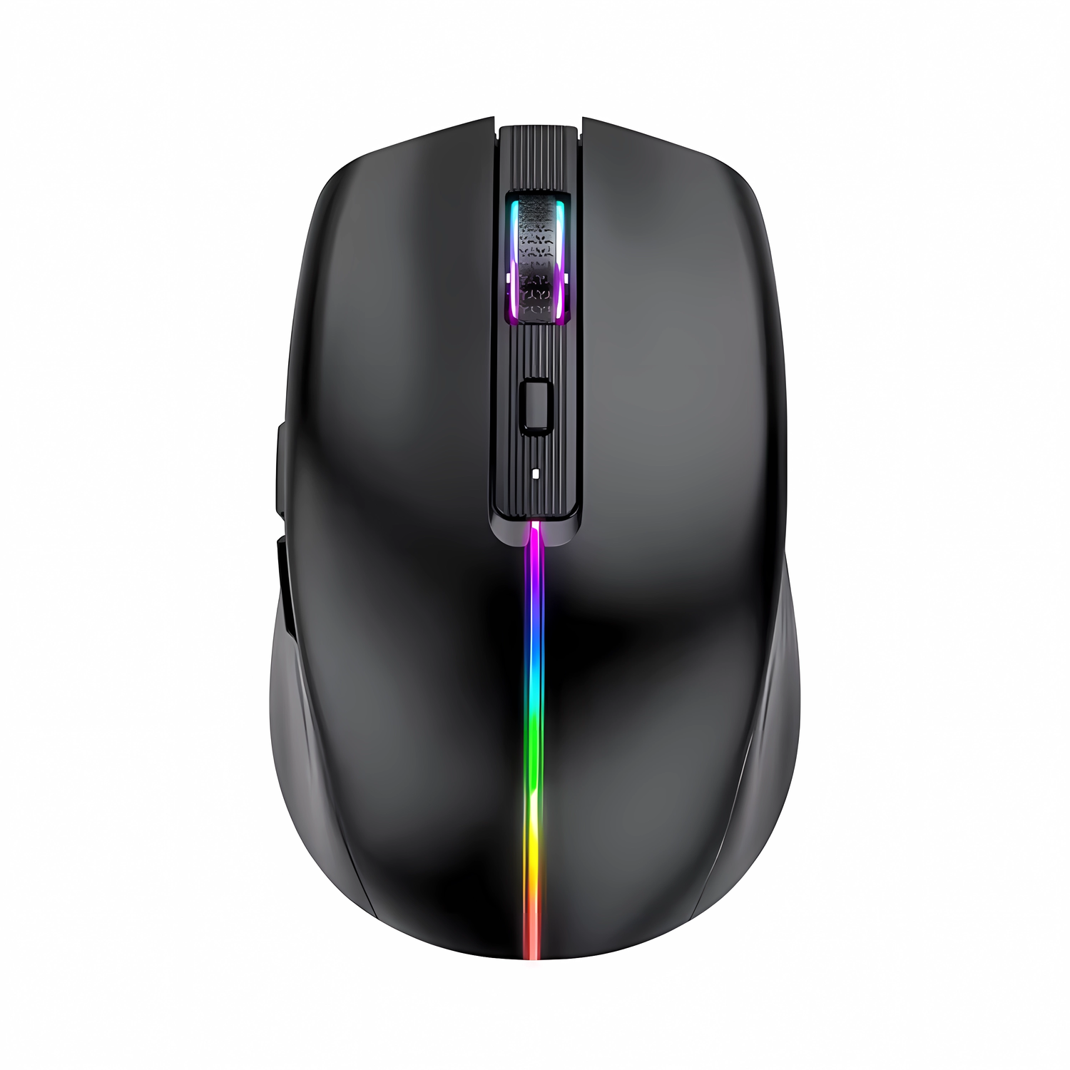 Vezeték nélküli Bervolo® Nexus Pro egér, egyszerre 3 eszközhöz csatlakoztatható, állítható DPI, RGB világítás, USB Type-C újratölthető, halk kattintás, ergonomikus, fekete